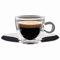 Een espressoglas moet daarom dubbelwandig zijn, zodat de warmte geïsoleerd wordt en de espresso niet te snel afkoelt.